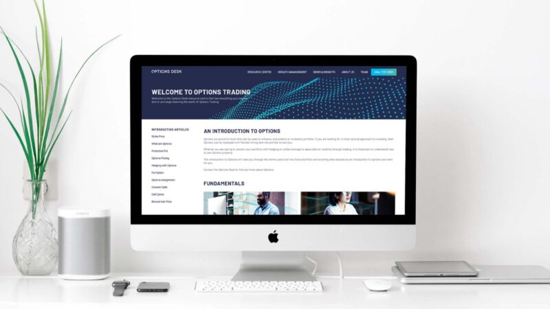 AMC Group, one of the UK’s largest private companies, asked us to help launch their new subsidiary business, OptionsDesk. OptionsDesk provides advisory and brokerage services in options, futures and cash equities for institutions and retail investors. The brand, website and tone of voice needed to be highly professional and trustworthy, and yet promote a sense of adventure for traders and investors.